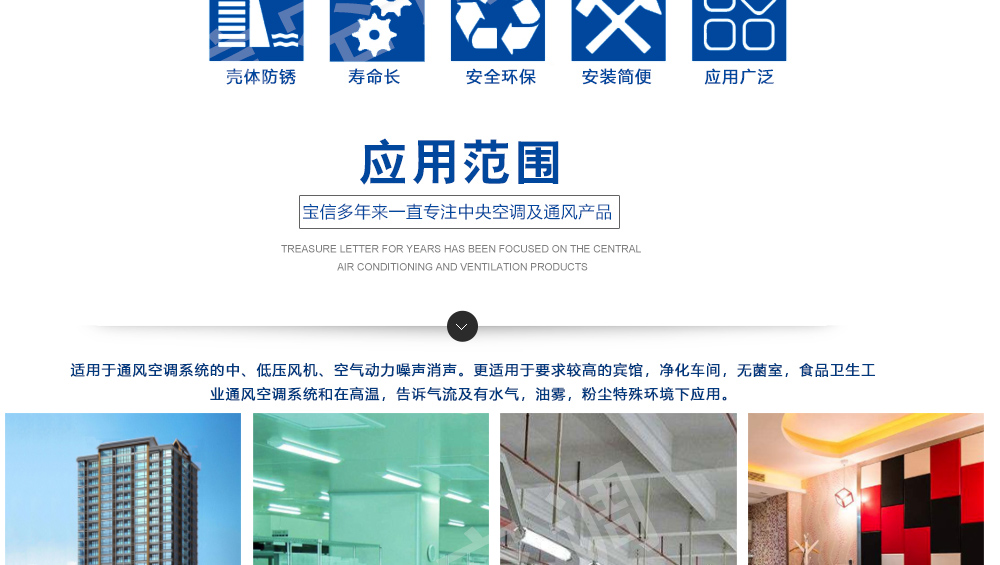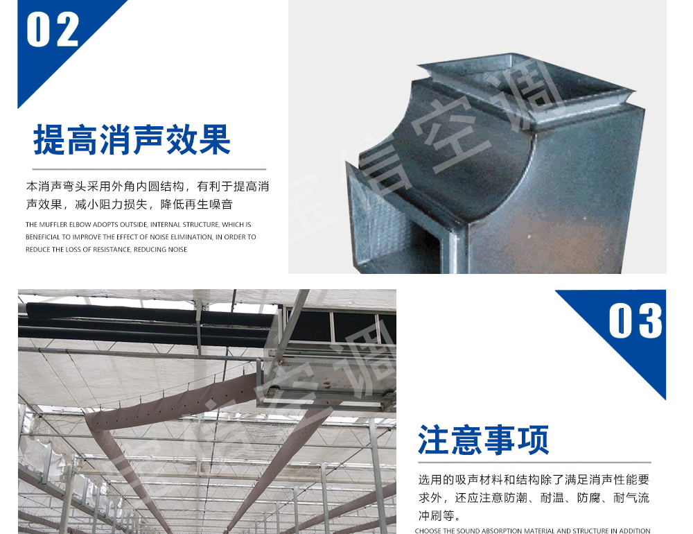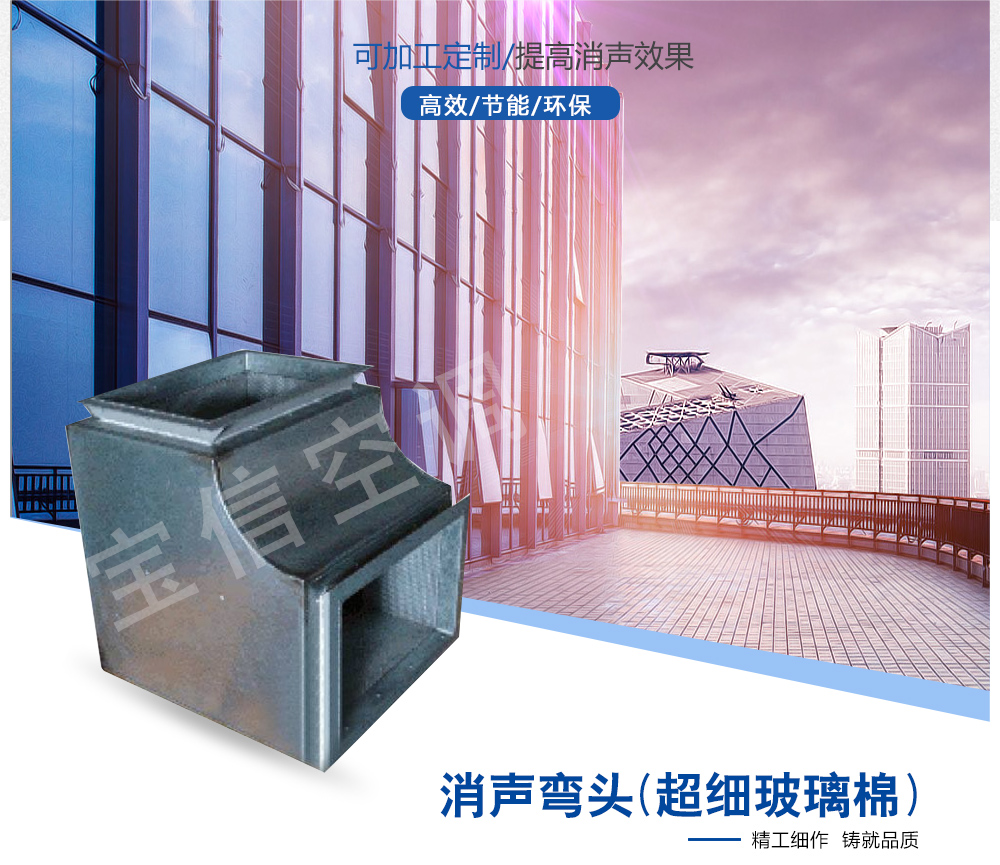 本消聲彎頭采用外角內(nèi)圓結(jié)構(gòu),有利于提高消聲效果,減小阻力損失,降低再生噪音,外殼采用鋼板(或鍍鋅板),吸聲材料為玻璃布包超細(xì)玻璃棉,并以木框(或鋼框)作龍骨,保證吸聲材料在高速氣流下的穩(wěn)定性。